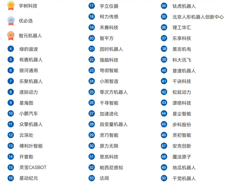 科沃斯 石頭科技 追覓科技 安克創(chuàng)新 優(yōu)必選 高仙機(jī)器人 海爾智家 普渡科技 盈峰環(huán)境 九號(hào)機(jī)器人 新時(shí)達(dá) 擎朗智能 獵戶星空 優(yōu)地科技 達(dá)闥機(jī)器人 YOGO ROBOT 極目機(jī)器人